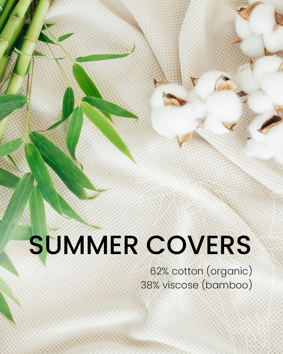 FUNDAS DE VERANO respetuosas con el medio ambiente, tejidas con un 62% de algodón orgánico y un 38% de bambú renovable.